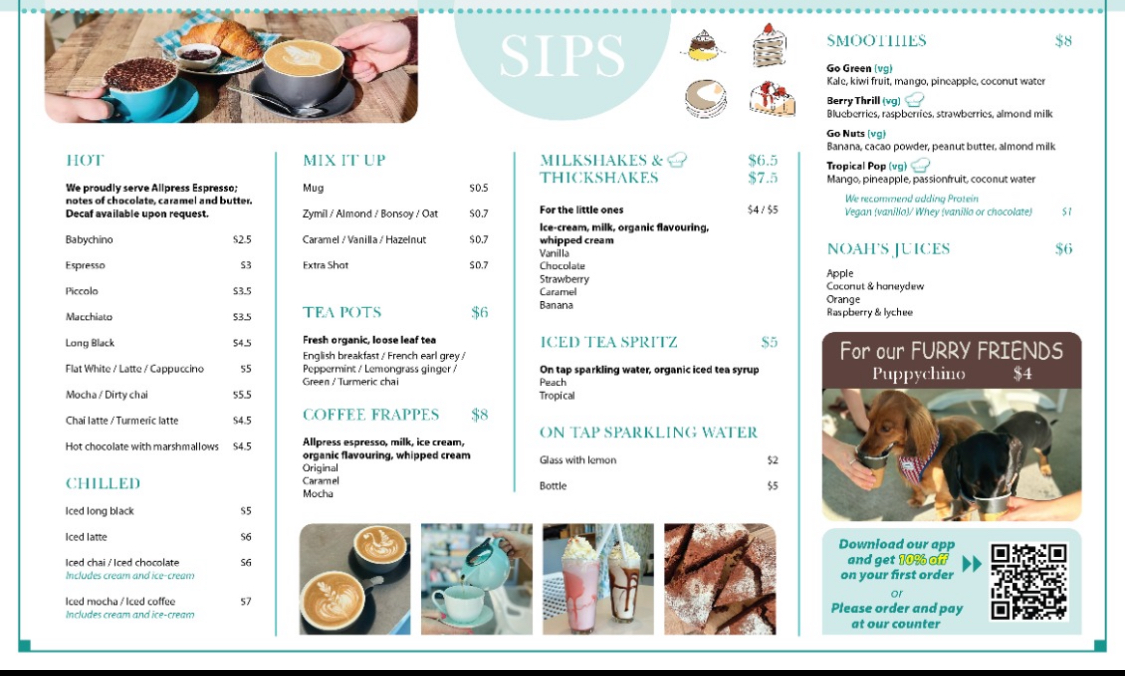 For those with a sweet tooth, indulge in a steaming cup of Chai Latte or glide into the cozy comfort of a Hot Chocolate topped with fluffy marshmallows. The children will be thrilled with the fun Baby Chino—a little cup of joy accompanied by mini marshmallows, perfect for your little coffee lovers. Don’t miss out on their unique BBQ pulled pork wrap, packed with juicy flavors and fresh vegetables that will leave you wanting more.